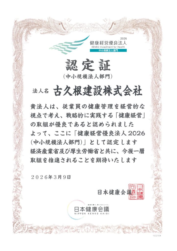 今年度も「健康経営優良法人」の認定をいただきました。今年で9年連続での認定となります。さらなる健康経営に取り組んでまいります。